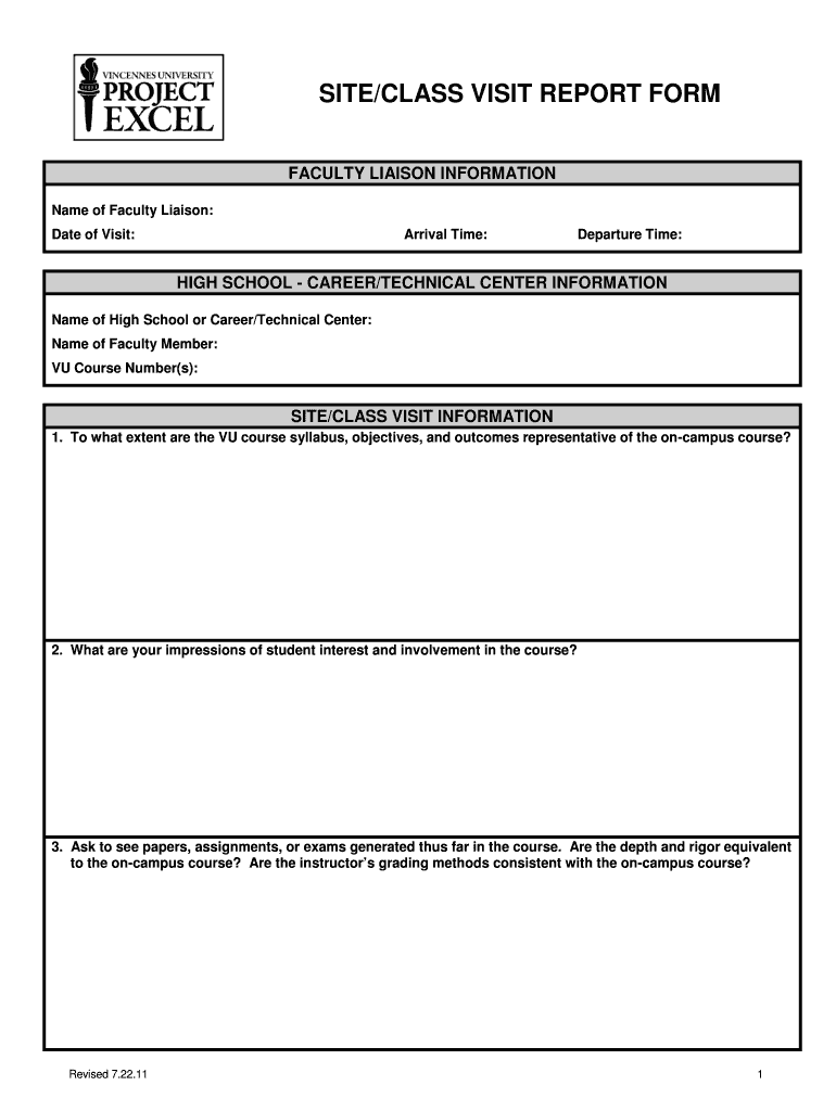 Get the free SITECLASS VISIT REPORT FORM - vinu