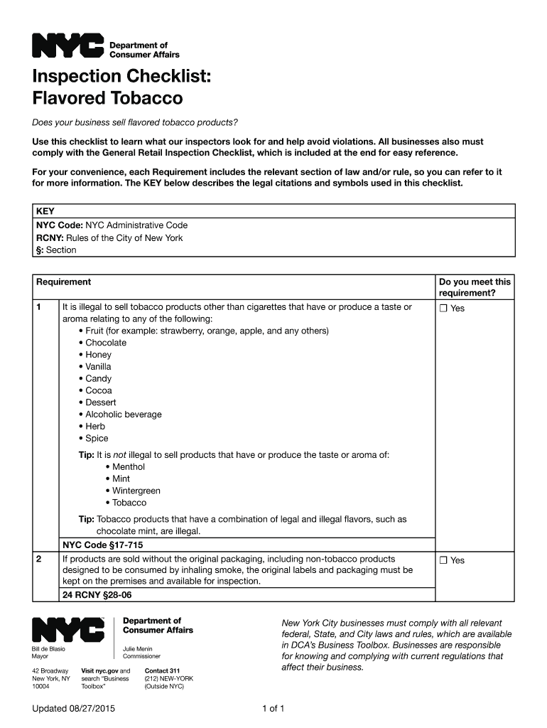 Retailers and distributors of flavored tobacco products are required to file the inspection checklist.