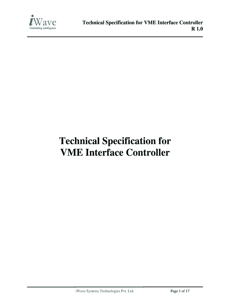 Get the free Technical Specification for VME Interface Controller R 1