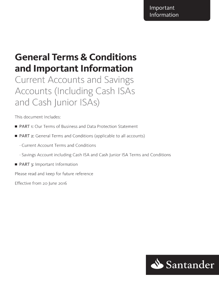 Important Information General Terms & Conditions and Important Information Current Accounts and Savings Accounts (Including Cash ISA's and Cash Junior ISA's) This document Includes: n PART 1: Our