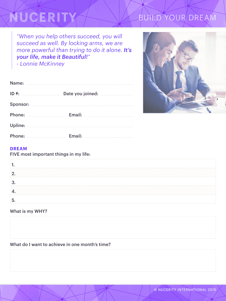 BUILD YOUR DREAM When you help others succeed, you will succeed as well. By locking arms, we are more powerful than trying to do it alone. It's your life, make it Beautiful! Lonnie McKinney Name:
