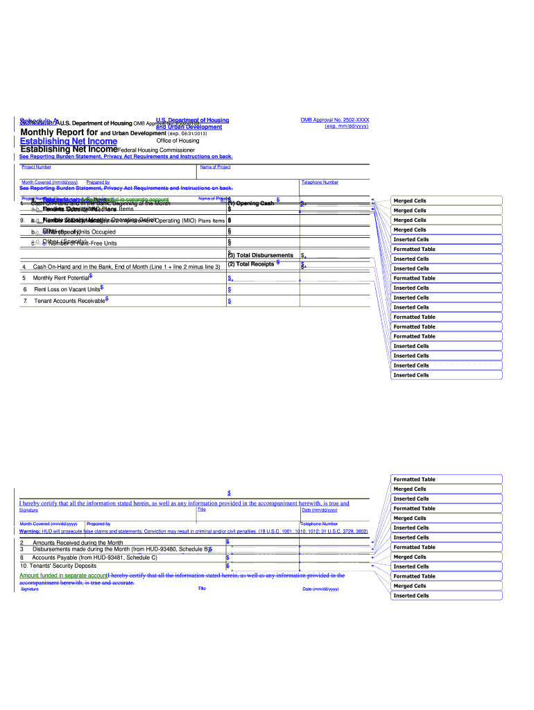 OMB Approval No. 2502XXXX (exp. mm/dd/YYY) U.S. Department Schedule A U.S. Department of Housing OMB Approval No. 25020108 of Housing Schedule A and Urban Development Monthly Report for and Urban