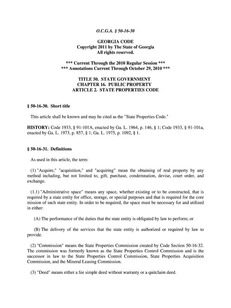 O.C.G.A. 501630 GEORGIA CODE Copyright 2011 by The State of Georgia All rights reserved. *** Current Through the 2010 Regular Session *** *** Annotations Current Through October 29, 2010 *** TITLE