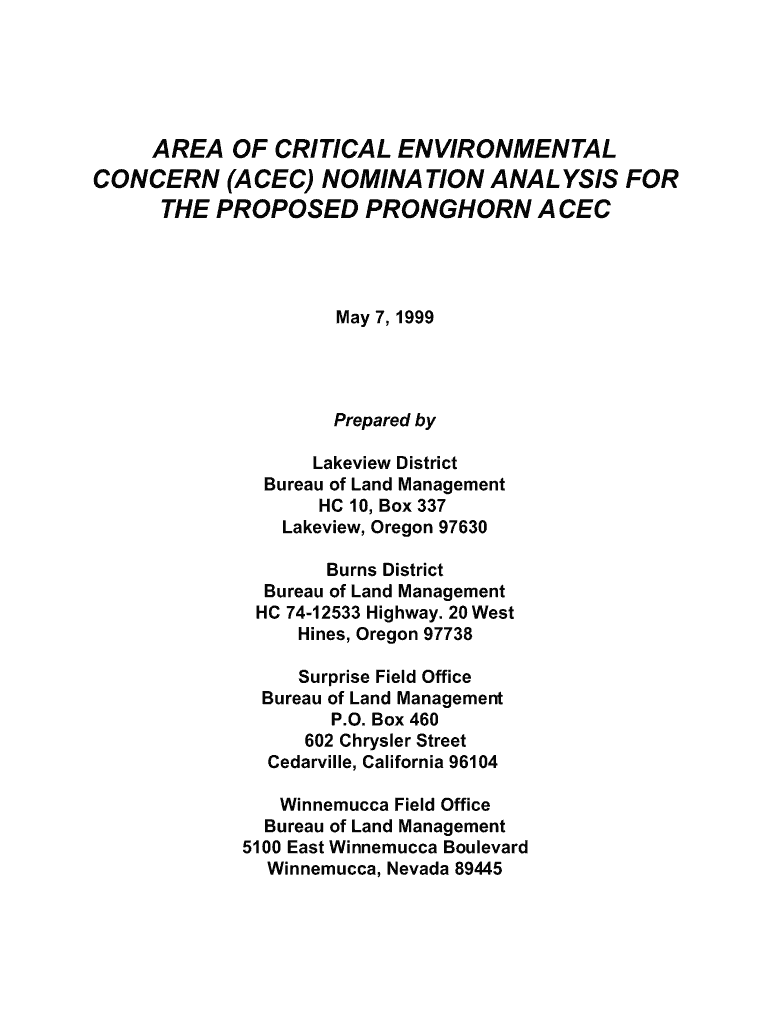 Get the free Area of Critical Environmental Concern Nomination Analysis for the Proposed Pronghor...