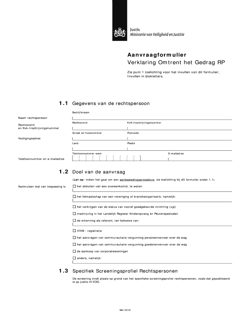 Get the free Verklaring Omtrent het Gedrag RP - justis