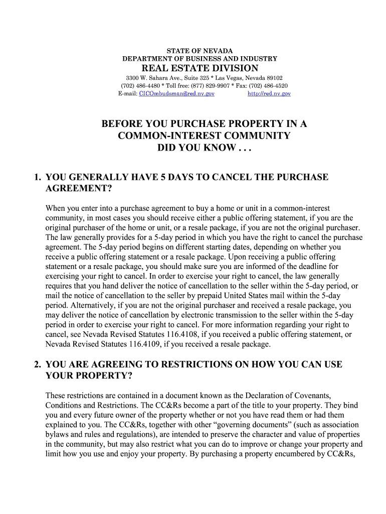 Fill out your NV Before You Purchase Property in a Common-Interest Community online with pdfFiller!