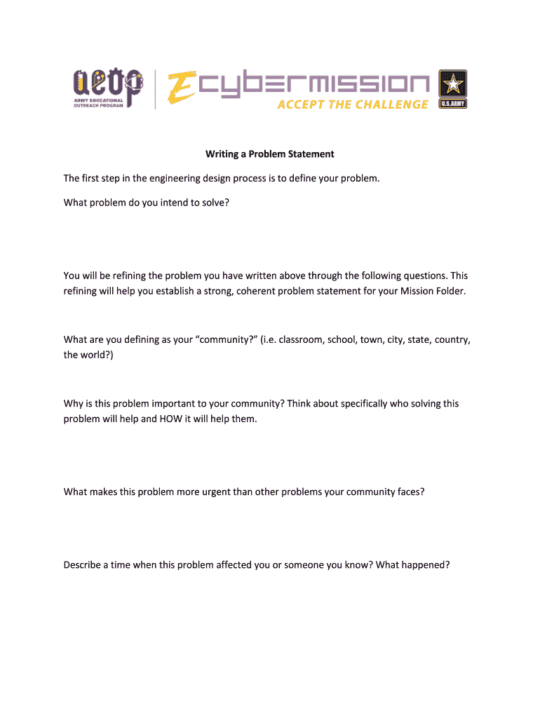 Get the free Writing a Problem Statement The first step in the ... - eCYBERMISSION