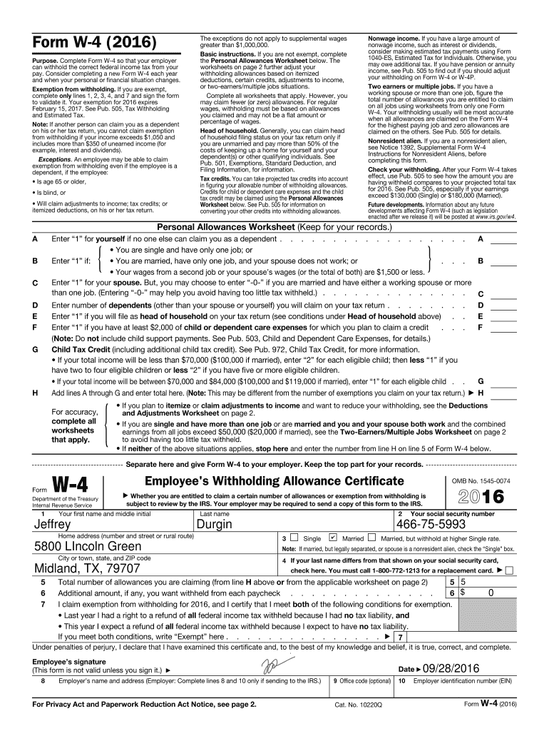 Form W4 (2016)