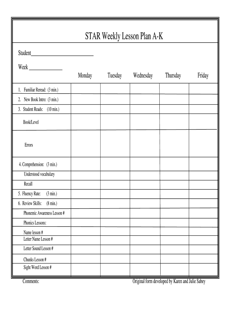 Get the free STAR Weekly Lesson Plan A-K - schools utah