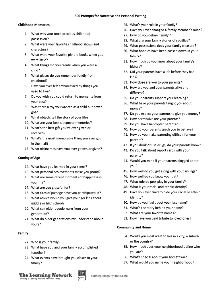 Fill out your 500 prompts for narrative online with pdfFiller!