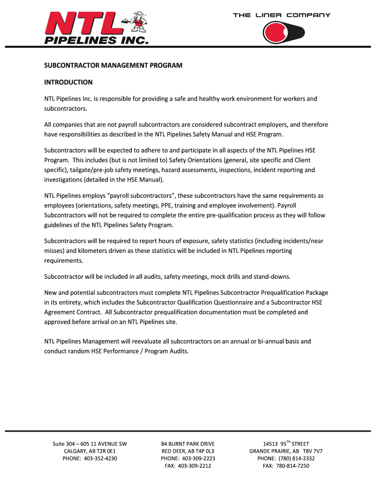 How to fill out subcontractor management program