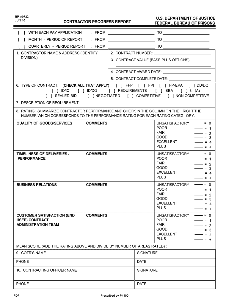 The Contractor Progress Report is a government form used by contractors to report contract progress, performance, and satisfaction to the U.S. Department of Justice.