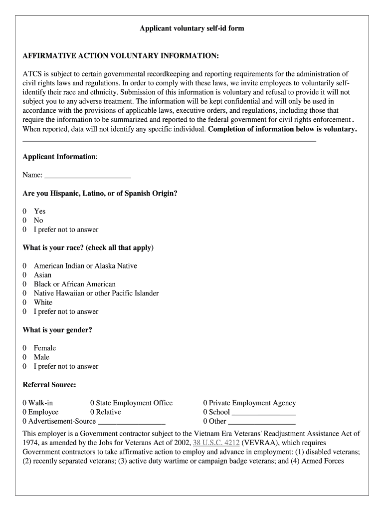 Get the free Applicant voluntary self-id form