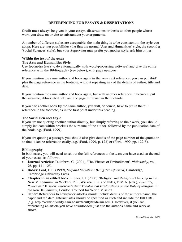 Get the free REFERENCING FOR ESSAYS & DISSERTATIONS