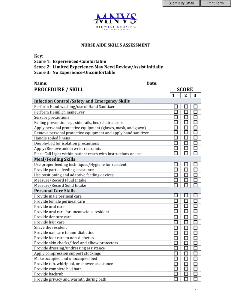 Nurse Aide Skills Assesment is not the form you're looking for?Search for another form here.