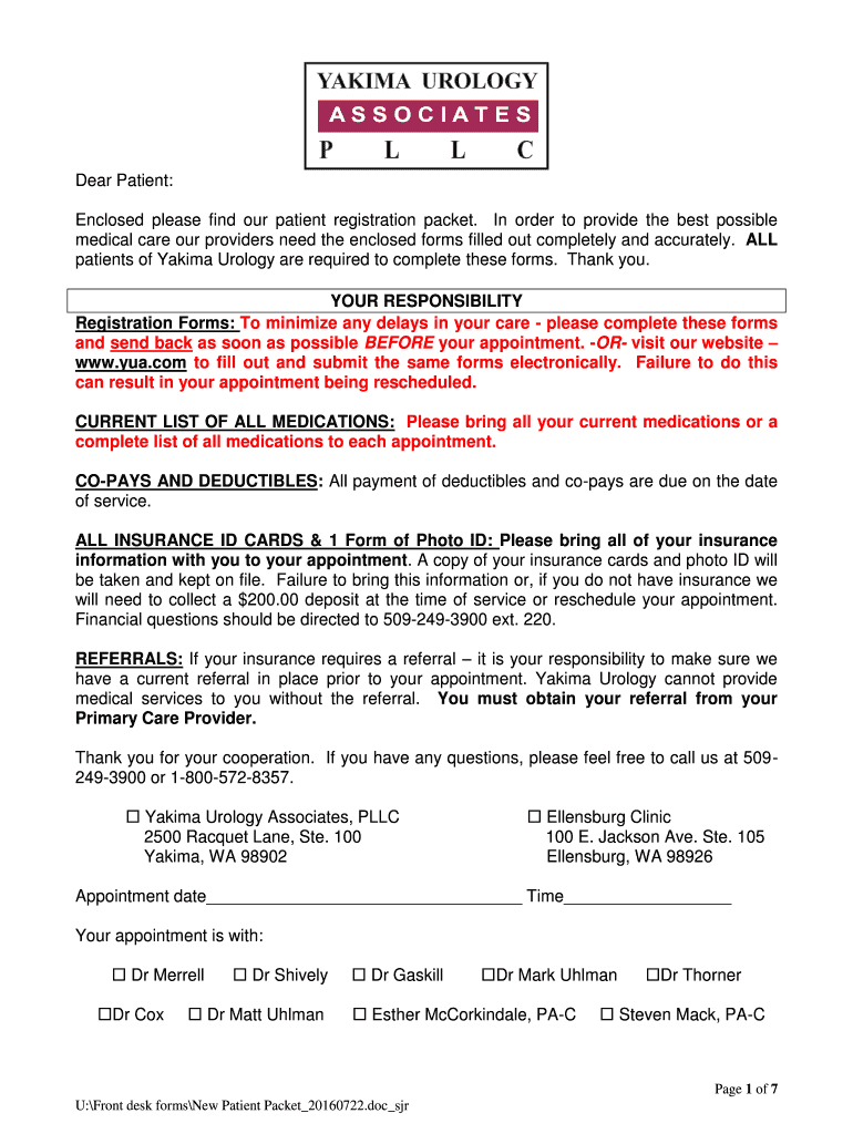 Dear Patient: Enclosed please find our patient registration packet. In order to provide the best possible medical care our providers need the enclosed forms filled out completely and accurately. ALL