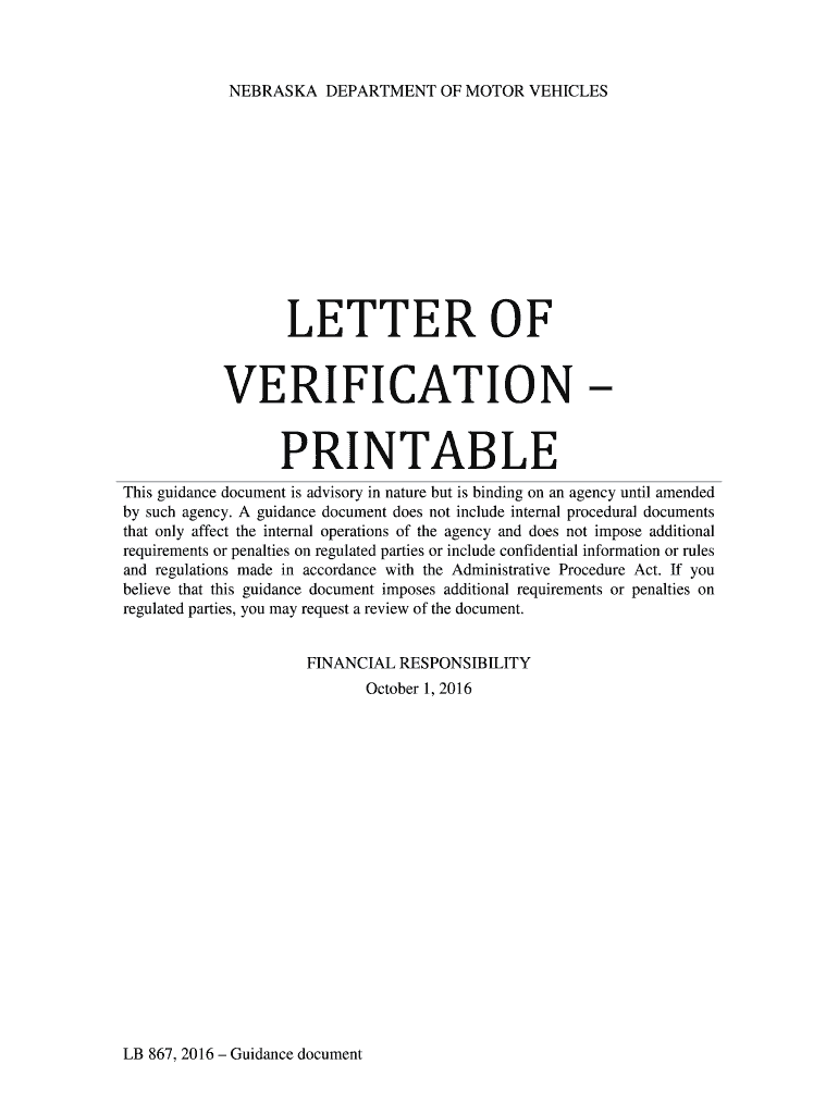 NEBRASKA DEPARTMENT OF MOTOR VEHICLES LETTER OF VERIFICATION PRINTABLE This guidance document is advisory in nature but is binding on an agency until amended by such agency. A guidance document does