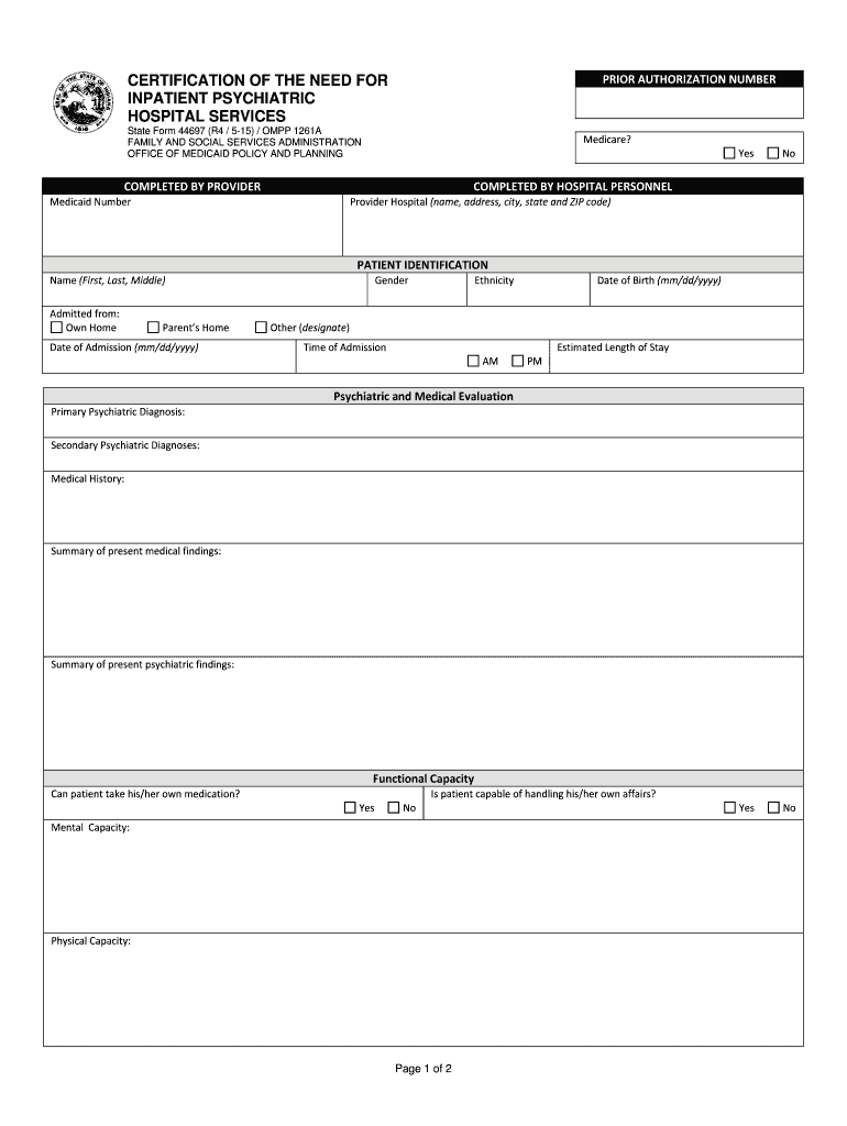 Get the free certification of the need for inpatient psychiatric hospital services - forms in