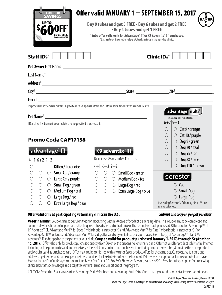 Offer valid JANUARY 1 SEPTEMBER 15, 2017, Buy 9 tubes and get 3 FREE Buy 6 tubes and get 2 FREE Buy 4 tubes and get 1 FREE 4 tube offer valid only for Advantage II or K9 Advance II purchases. *Estimate