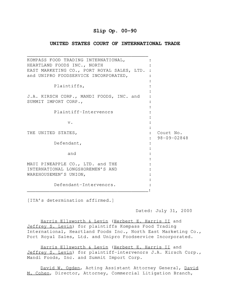 Get the free 00-90 UNITED STATES COURT OF INTERNATIONAL TRADE KOMPASS FOOD TRADING INTERNATIONAL,...