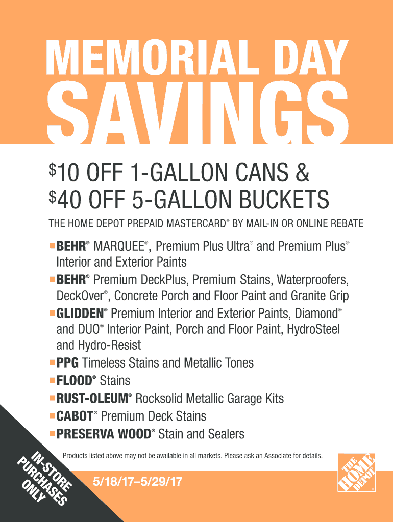 MEMORIAL DAY SAVINGS $10 OFF 1GALLON CANS & $40 OFF 5GALLON BUCKETS THE HOME DEPOT PREPAID MASTERCARD BY MAILING OR ONLINE REBATE BEAR MARQUEE, Premium Plus Ultra and Premium Plus Interior and Exterior