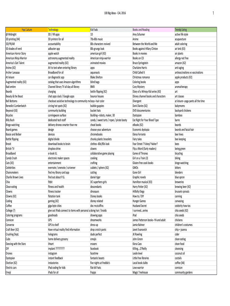 Get the free 100 Big Ideas - CAL 2016 Pop Culture Technology Kid Fads Books ...