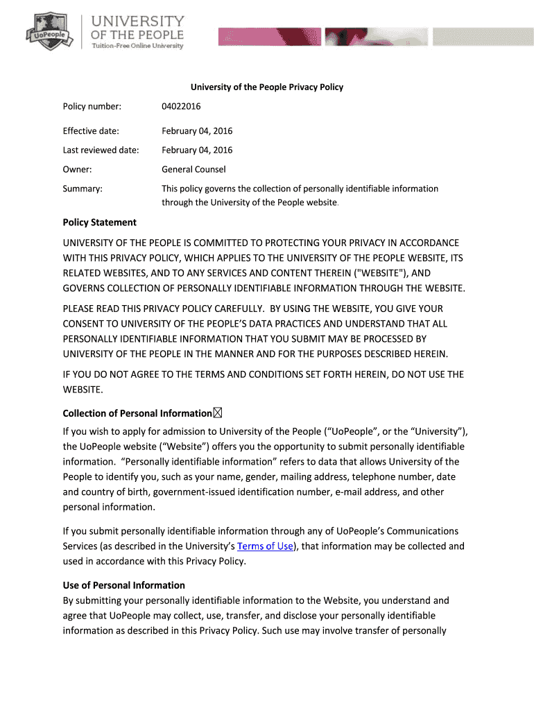Get the free Policy Statement UNIVERSITY OF THE PEOPLE IS ... - UoPeople