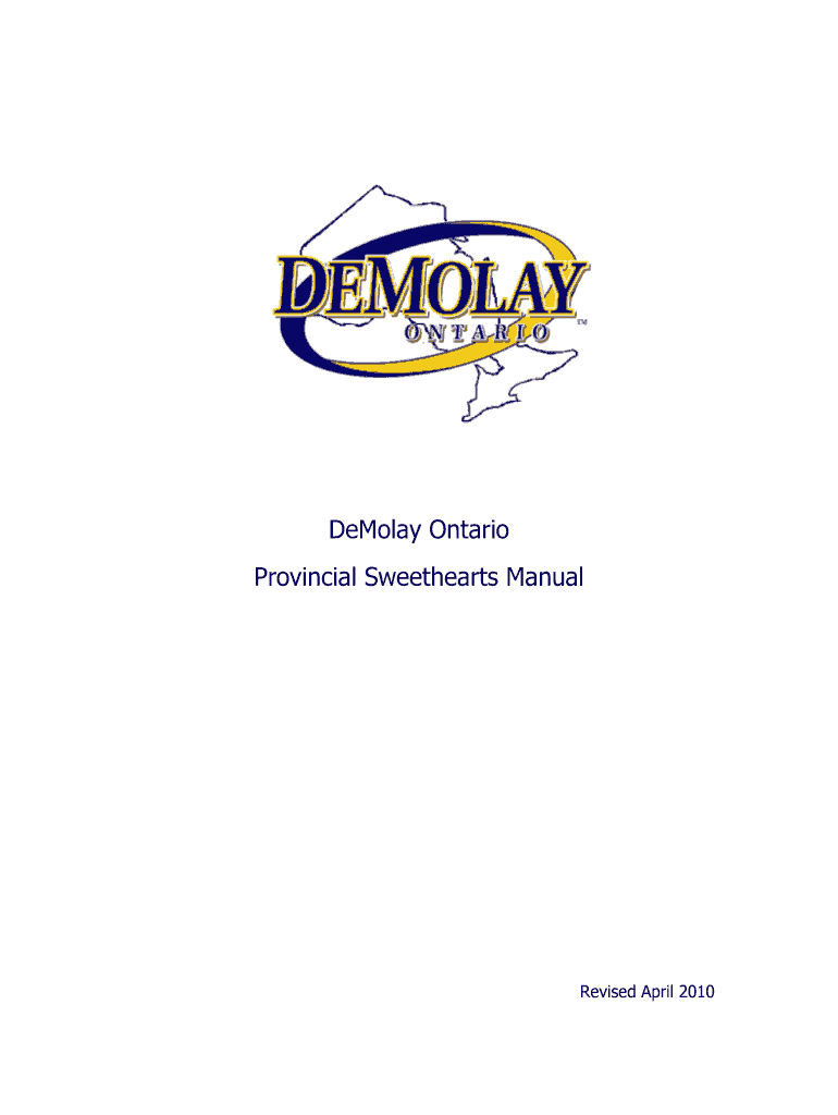 Demo lay Ontario Provincial Sweethearts ManualRevised April 2010DeMolay Ontario Provincial Sweethearts Manual Authority: These policies are under the authority of the Executive Officer of the jurisdiction