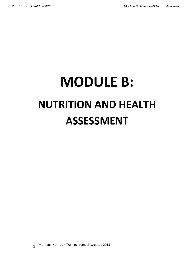 Nutrition and Health in Module B: Nutrition Health AssessmentMODULE B: NUTRITION AND HEALTH ASSESSMENT1Montana Nutrition Training Manual Created 2015Nutrition and Health in Module B: Nutrition Health