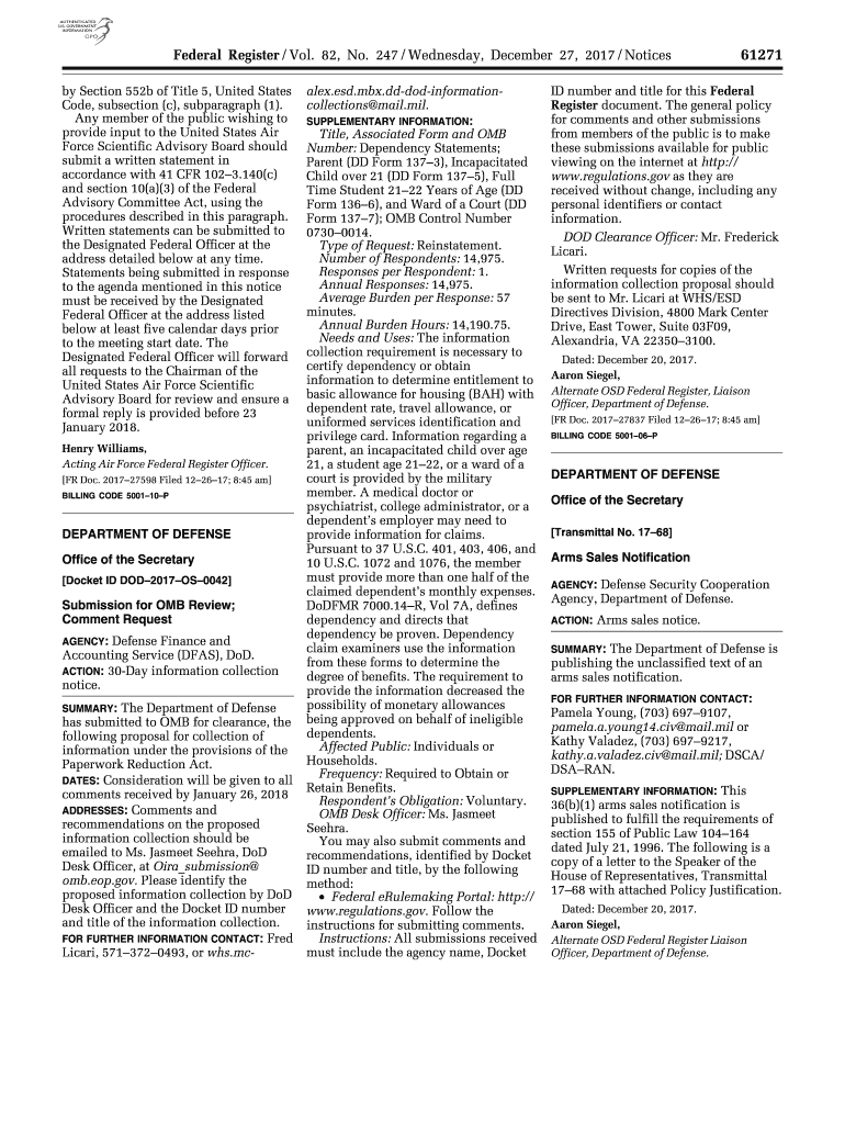Federal Register / Vol. 82, No. 247 / Wednesday, December 27, 2017 / Notices