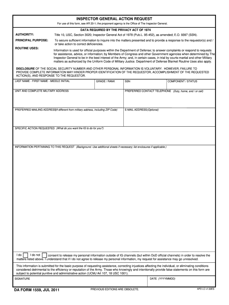 How to fill out INSPECTOR GENERAL ACTION REQUEST?