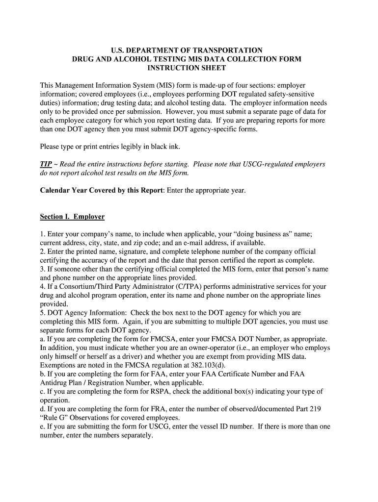 Instructions for Filling Out the DOT Drug and Alcohol Testing MIS Form