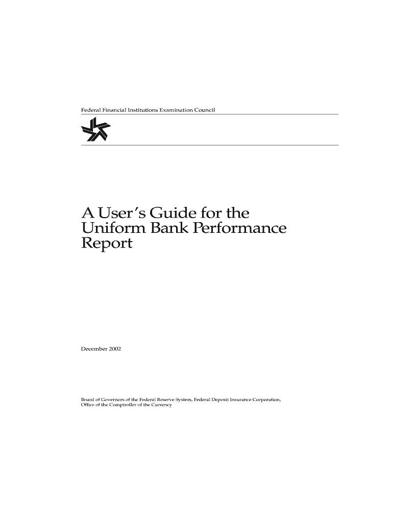 Federal Financial Institutions Examination Council Users Guide for the Uniform Bank Performance Report Users Guide for the