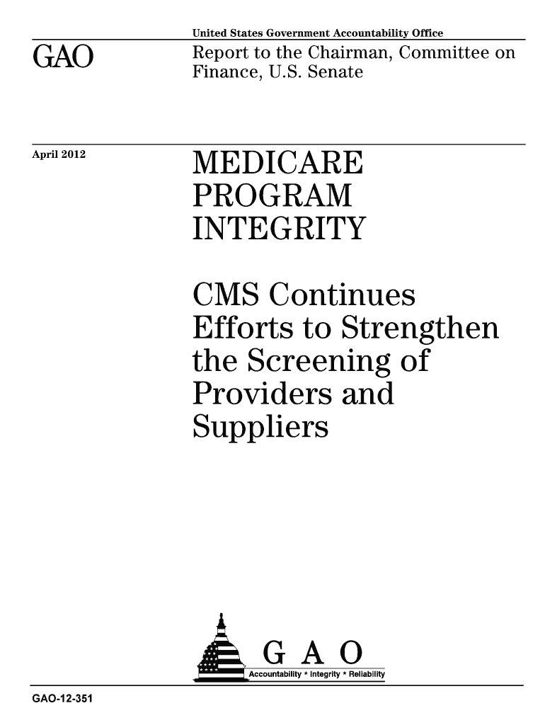 April 2012United States Government Accountability OfficeReport to the Chairman, Committee on