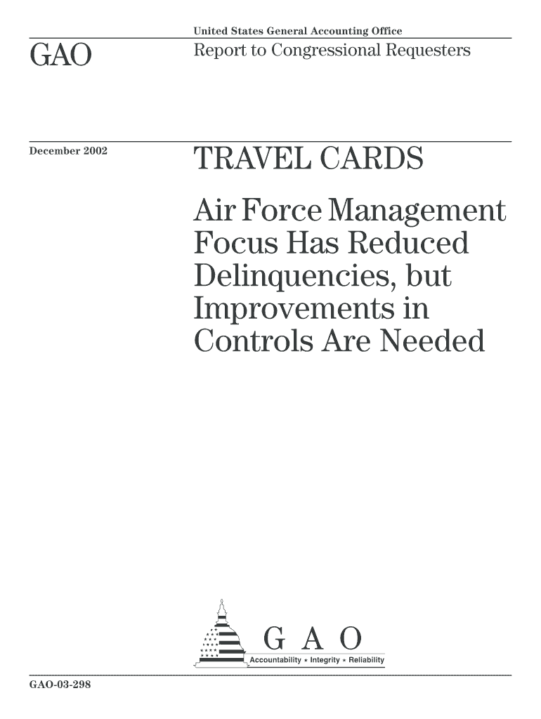 United States General Accounting Office GAO Report to Congressional Requesters December 2002 TRAVEL CARDS Air Force Management Focus Has Reduced Delinquencies, but Improvements in Controls Are Needed