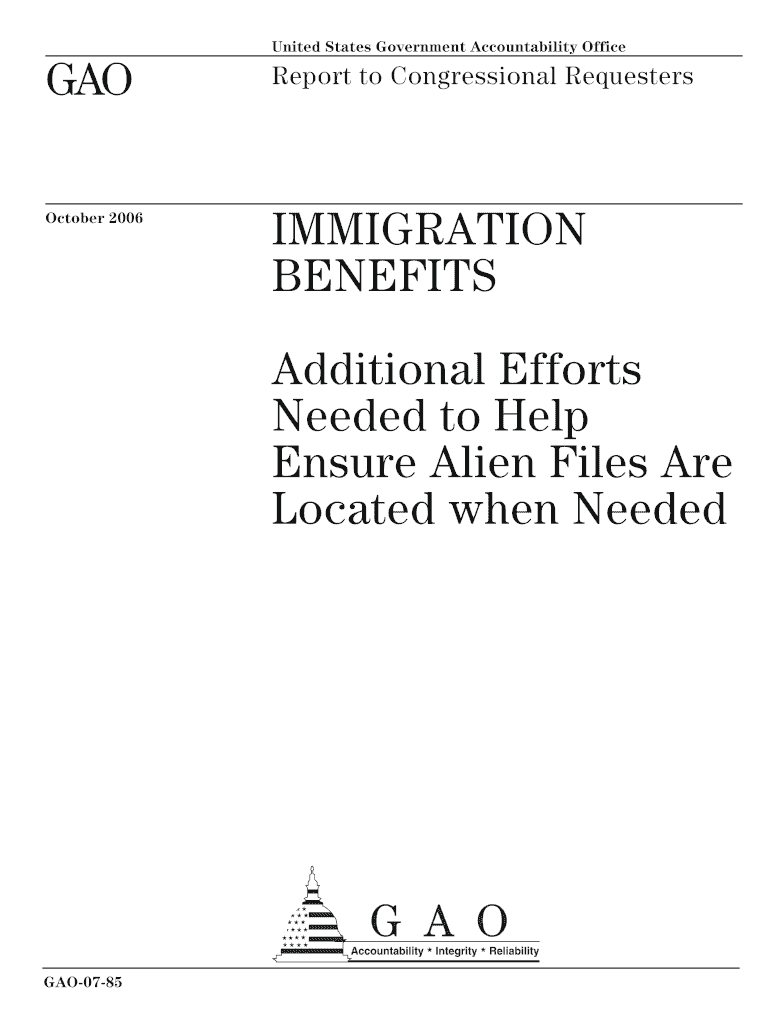United States Government Accountability OfficeGAOReport to Congressional RequestersOctober 2006IMMIGRATION