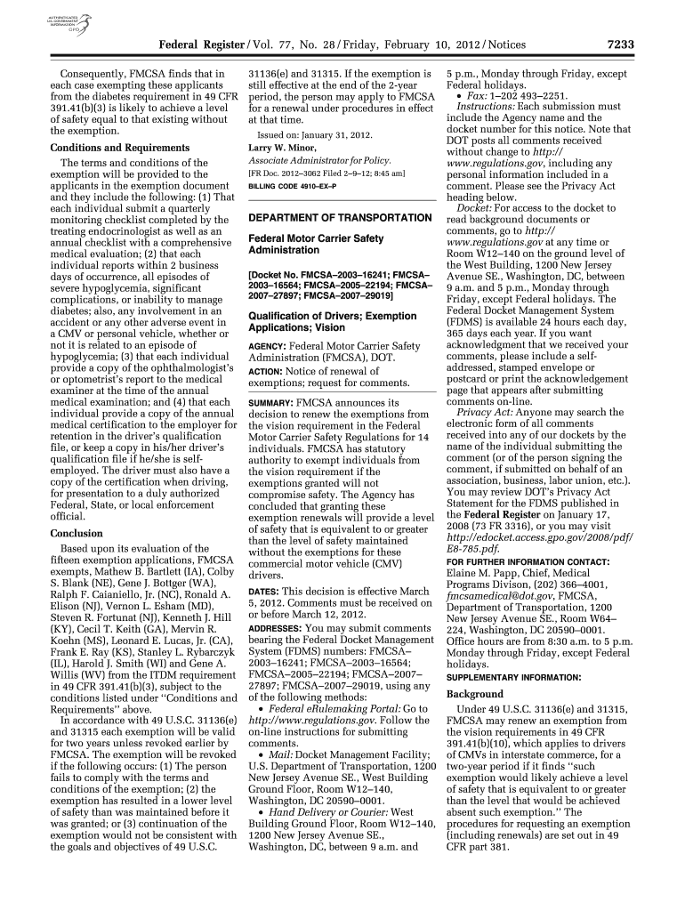 Get the free Notice of Renewal of Exemptions; Request for Comments - gpo