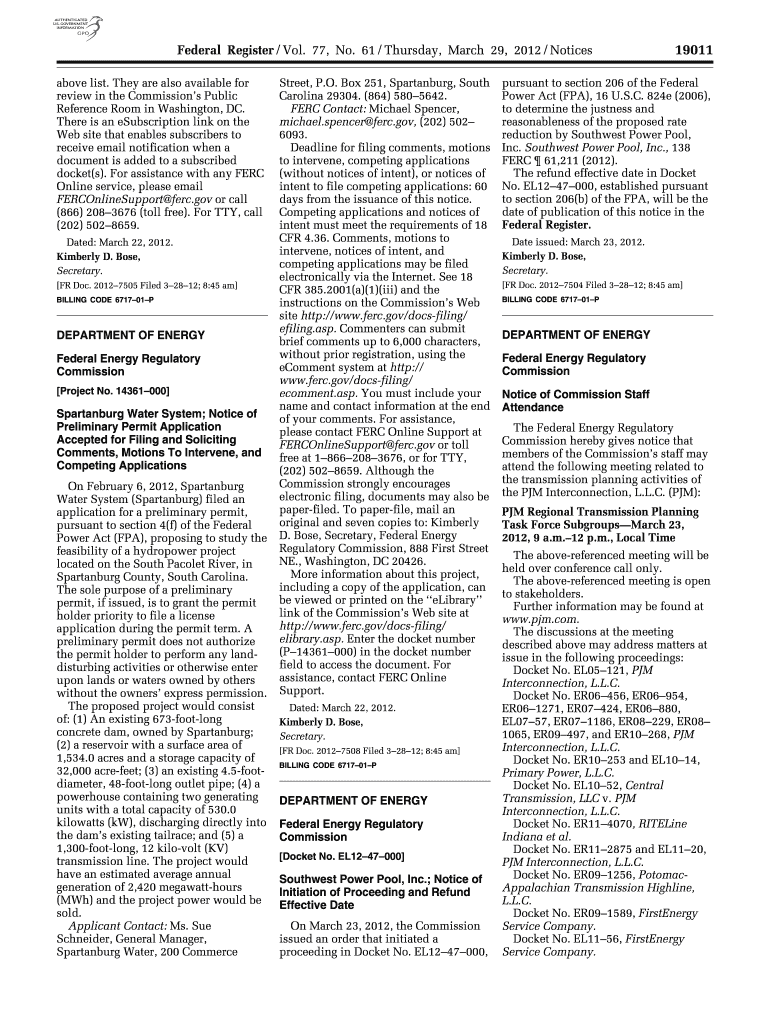 Get the free Notice of Preliminary Permit Application Accepted for Filing and Soliciting Comments...