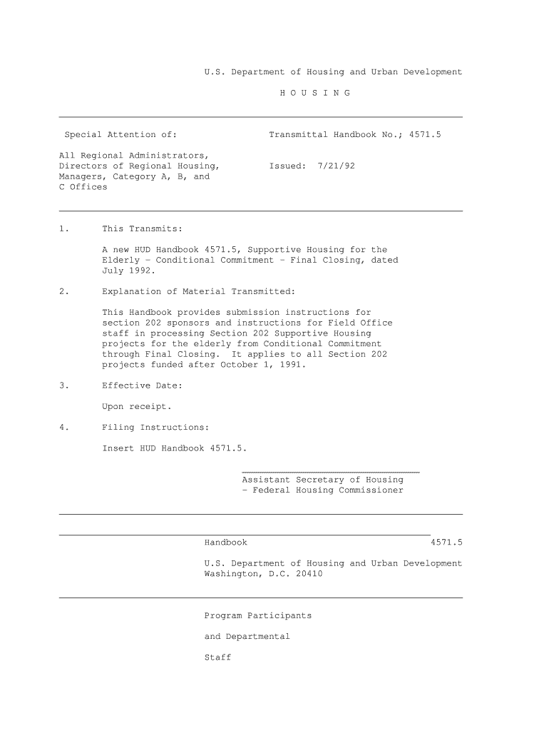 Get the free HUD Handbook 4571.5, Supportive Housing for the Elderly - hud
