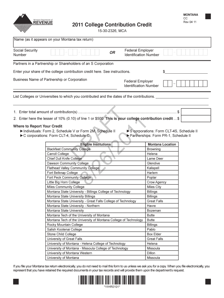 To utilize the Montana College Contribution Credit Form, contributors must adhere to specific eligibility criteria. Eligible institutions include various accredited educational entities within Montana. Additionally, individuals, partnerships, and corporations must meet requirements defined by Montana state law.