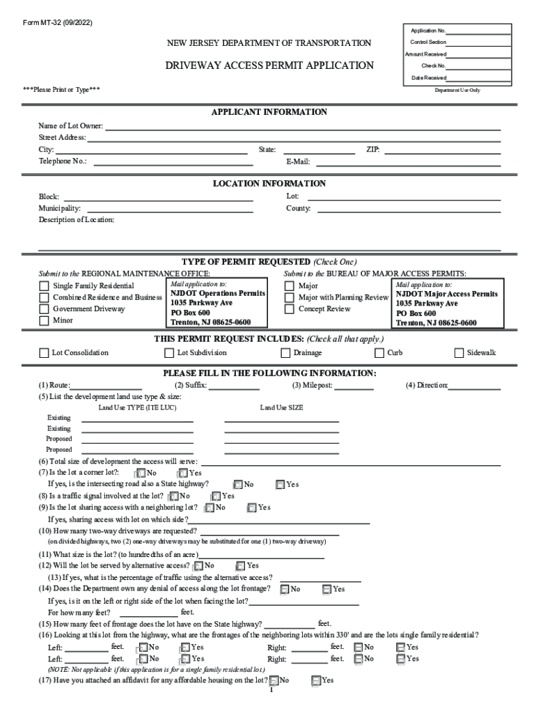 Acquiring the New Jersey Driveway Access Permit is crucial for several reasons. Firstly, without a valid permit, lot owners may face legal consequences, including fines and the potential requirement to remove unauthorized access points. The permit guarantees that the established driveway access adheres to state regulations, which can prevent future complications.