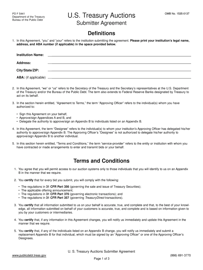 Get the free U.S. Treasury Auctions Submitter Agreement - ftp publicdebt treas