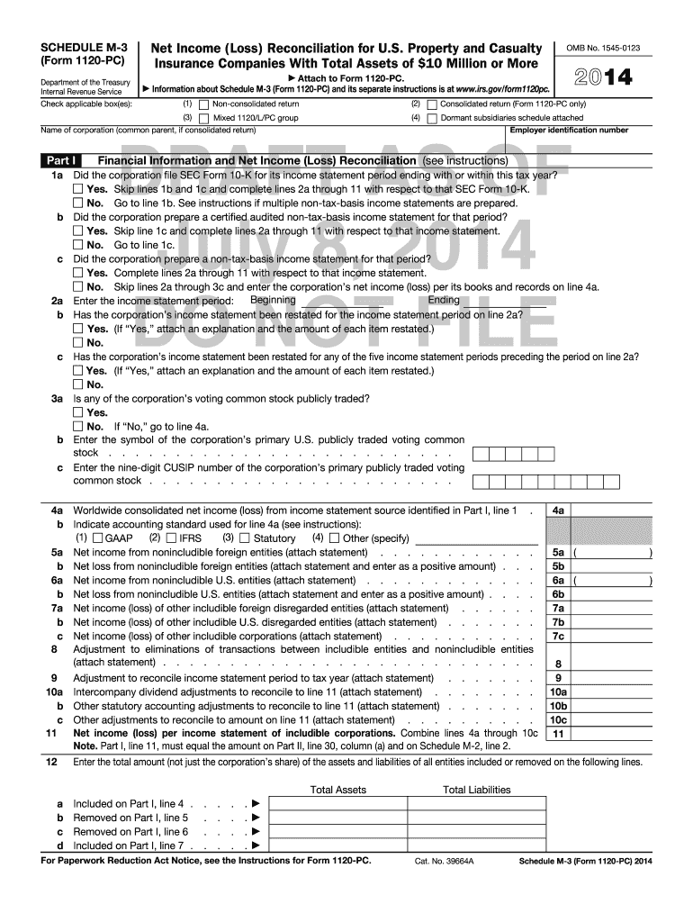 Insurance companies that have total assets of $10 million or more and file Form 1120-PC are required to file Schedule M-3.