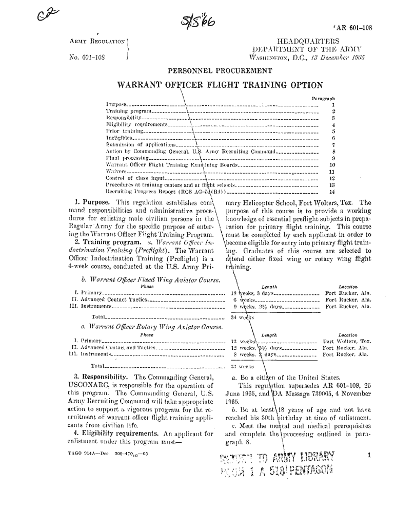 This regulation establishes responsibilities and administrative procedures for enlisting civilians into the Regular Army for the Warrant Officer Flight Training Program, detailing eligibility requirements,