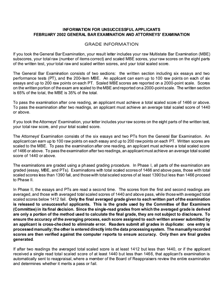 Get the free Information for Unsuccessful Applicants February 2002 General Bar Examination - admi...