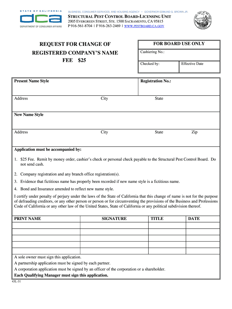 Get the free Request for Change of Registered Company’s Name - pestboard ca