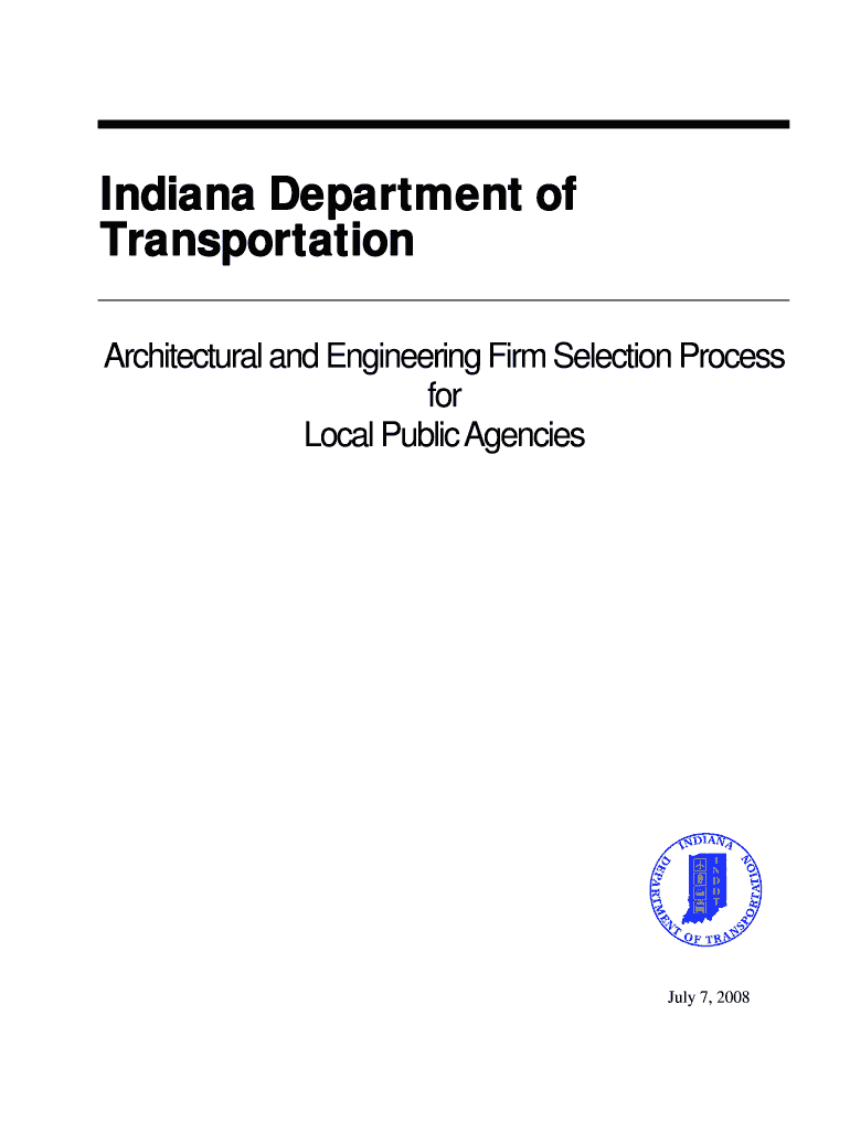 This document outlines the procedures for local public agencies (LPAs) in Indiana to select architectural and engineering (A/E) firms for projects utilizing federal aid funds, detailing the selection