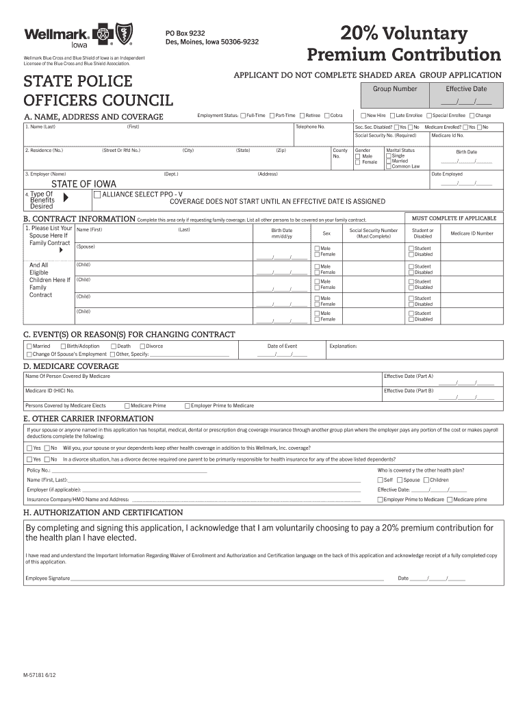 Get the free 20% Voluntary Health Coverage Application - benefits iowa