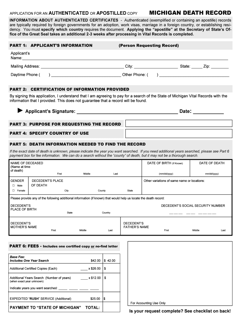 How to Fill Out the Michigan Death Record Authenticated Copy Application Online