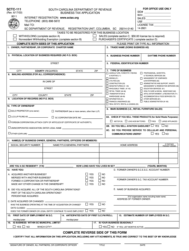 Get the free South Carolina Business Tax Application